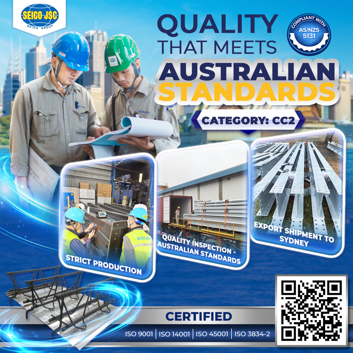 SEICO Steel chuyên về lĩnh vực thiết kế, gia công và thi công lắp dựng nhà thép tiền chế cho nhiều công trình (dự án) như: nhà máy đóng tàu, sân bay quốc tế, trung tâm triển lãm, nhà máy thủy điện, kho hàng, nhà xưởng, nhà trưng bày, kho lạnh, nhà máy luyện thép và nhiều công trình kết cấu thép...Xem thêm
