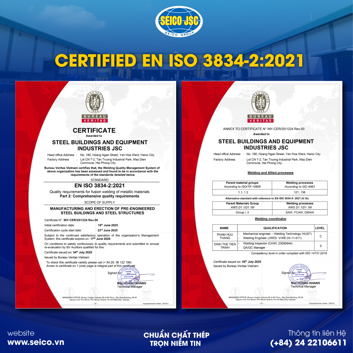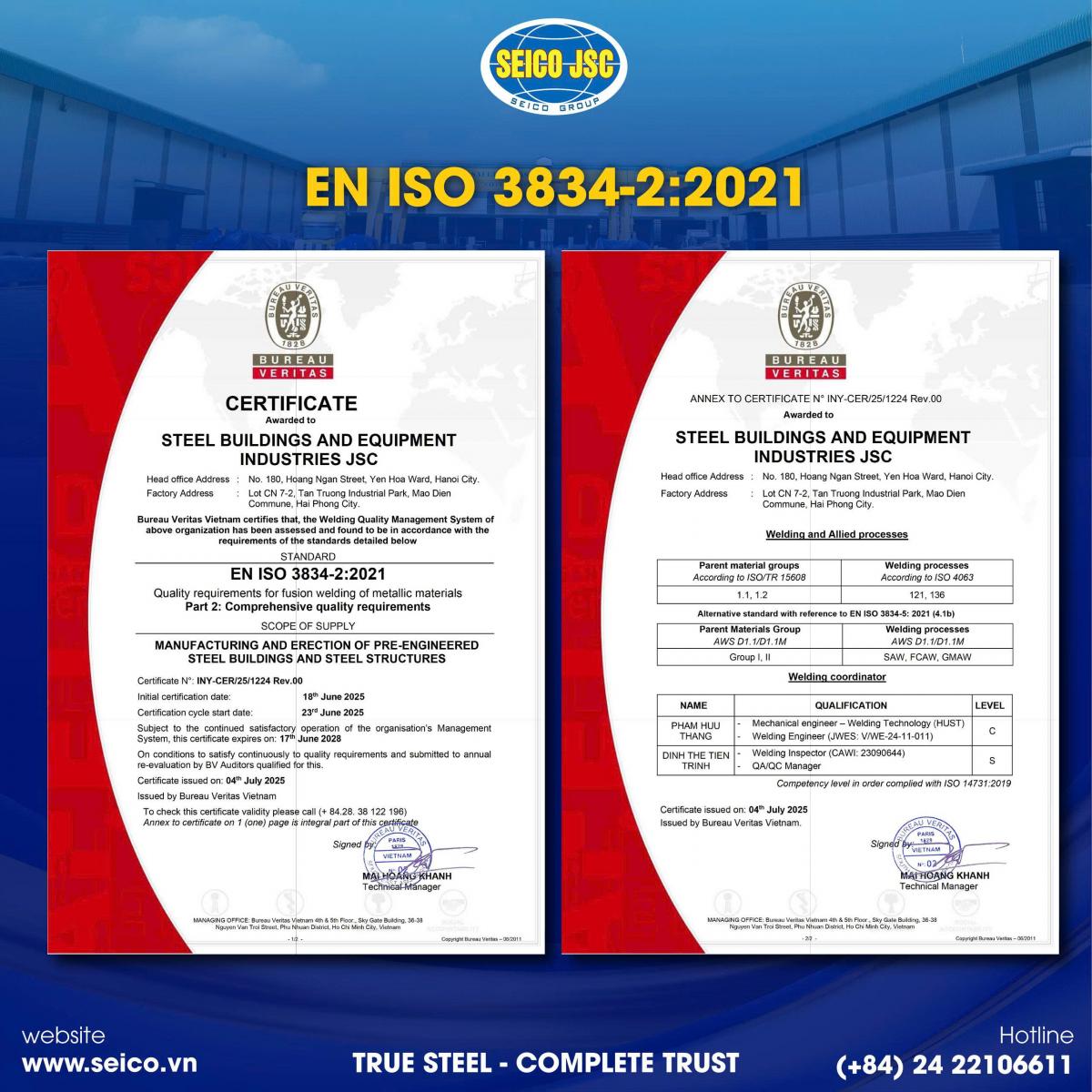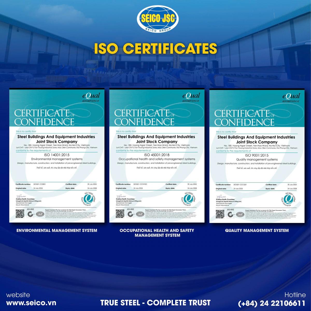 Những ghi nhận này là minh chứng rõ ràng cho cam kết chất lượng và năng lực đáp ứng các yêu cầu của các dự án quốc tế của SEICO.