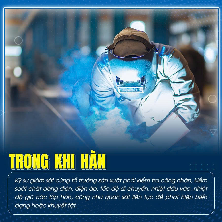 Trong quá trình hàn, việc giám sát cần được thực hiện liên tục và chặt chẽ: