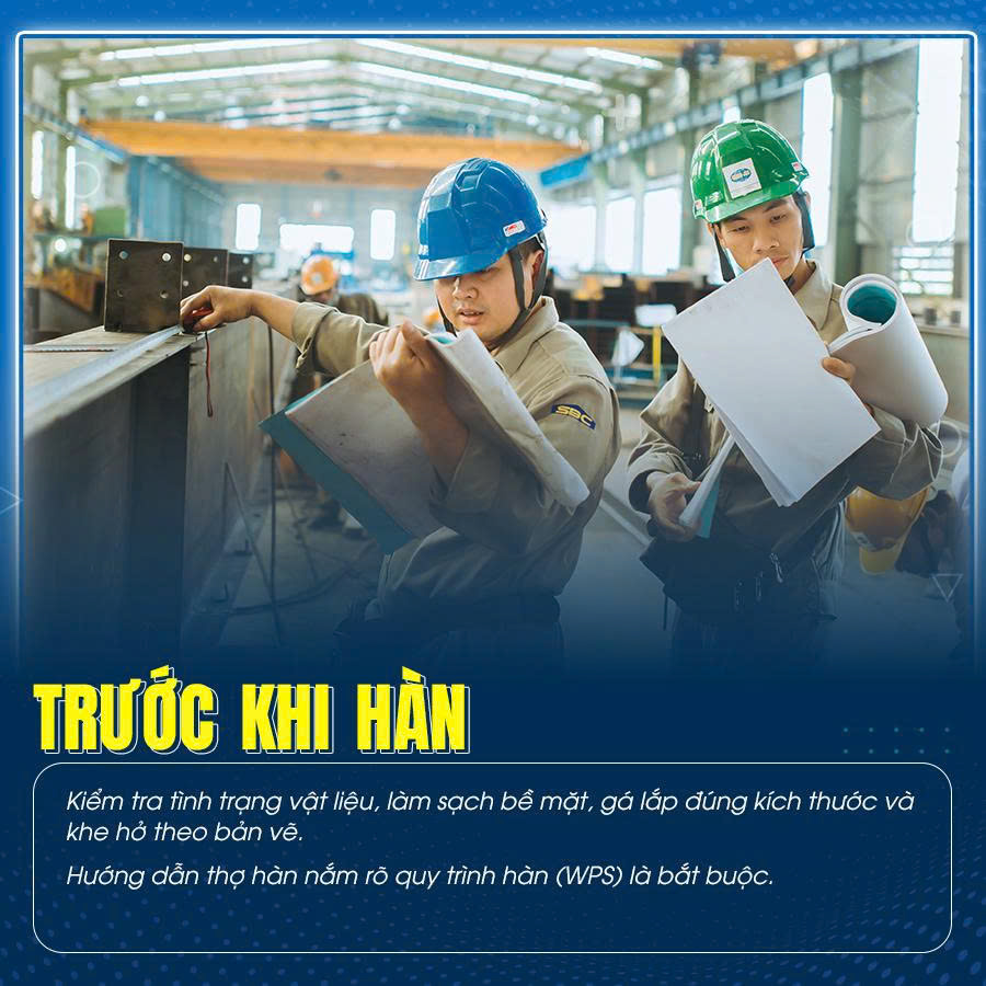 - Thợ hàn phải được hướng dẫn và nắm rõ quy trình hàn (WPS – Welding Procedure Specification).